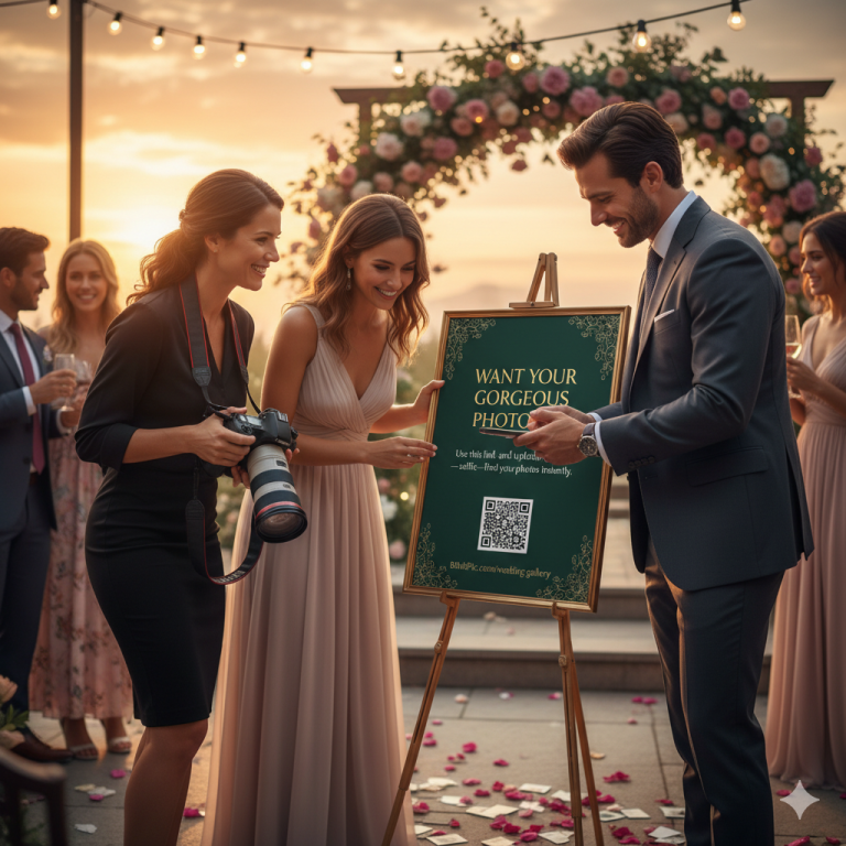 Rather than stopping the flow to take repeated phone-shots for guests, consider offering something better: instant professional access to their photos. With a tool like BlinkPic, you can upload all the event photos, and guests can quickly find their pictures via face recognition no more mobile phone requests, no pendrives, no delays.